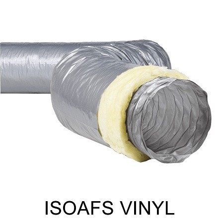ISOAFS VINYL представляют собой гибкие теплоизолированные виниловые воздуховоды диаметром от 82 до 254 мм, спиральный каркас которых изготовлен из высококачественной стальной проволоки.