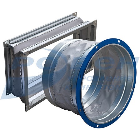 Вставки гибкие круглые и прямоугольные предназначены для предотвращения передачи вибрации от вентилятора к воздуховоду и применяются в вентиляционных системах, перемещающих воздух в интервалах температур от -45°С до +80°С.