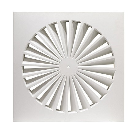 Разбитые на сектор направляющие пластины создают одинаковый поток воздуха по всему вентиляционному каналу. Эти диффузоры можно использовать на высоте от 2,6 до 4 метров, при перепаде температур до 12°С.
