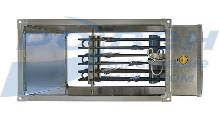 Электрические канальные воздухонагреватели (электрокалориферы) представляют собой корпус, в котором расположены трубчатые электронагреватели (ТЭН). Они создают электрическое сопротивление, которое преобразует энергию в тепло. Преимущества электрических воздухонагревателей состоят в следующем: они имеют небольшой перепад давления и они недороги в установке.