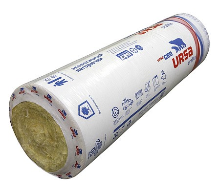URSA GEO М-11Ф (фольгированная) - материал выпускается в форме эластичных матов из минерального волокна, оклеенных с одной стороны алюминиевой фольгой для отражения тепла и защиты от пара. Применение этого материала позволяет отказаться от использования пароизоляционных пленок в конструкциях, где они необходимы, что значительно сокращает время монтажа.